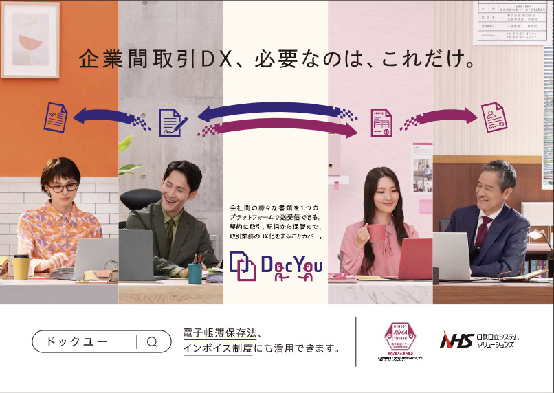 「電子契約」「電子取引」「書類配信」「ドキュメント管理」をトータルでサポートするオールインワンクラウドサービス、Doc YouのWebCM制作を実施。11月からはタクシーアド・トレインチャンネルでも配信を予定。