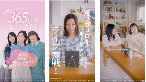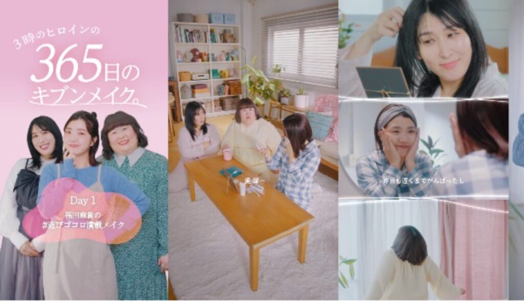 メインコピー「365日キブンメイク」を体現するタレントとして、等身大のキャラクターで人気の3時のヒロイン(福田麻貴さん、かなでさん、ゆめっちさん)を起用。本人役として出演してもらうことで、PR色が強い企画ながらも、彼女たちのナチュラルな演技と「ささやかで何気ない日常の中で、気分に合わせてメイクを楽しむ」という共感性の高いストーリーを描き、視聴者に自分ごと化してもらうことを狙った。